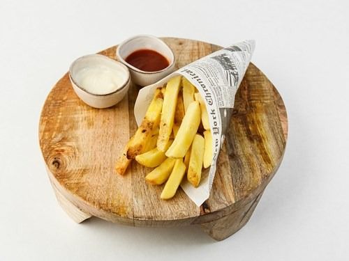 Serviert mit Ketchup oder Mayonnaise